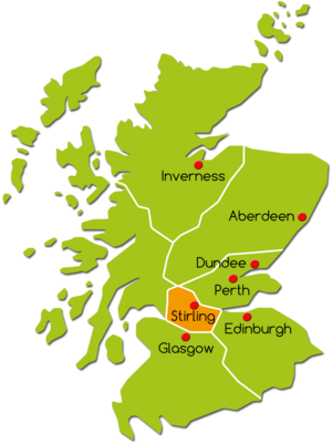 In den letzten zwei Jahrhunderten hat sich Stirling zu einer Verwaltungs- und Industriestadt entwickelt. Aufgrund seiner strategischen Lage ist der Ort bereits im 13. Jh. zu einer „Royal Burgh“ aufgestiegen. Hier gehen die Lowlands langsam in die Highlands über, und als „Tor zum Hochland“ war diese Region immer wieder heftig umkämpft und aufgrund seiner strategischen Lage in der mittelschottischen Ebene Schauplatz von geschichtsträchtigen Auseinandersetzungen. Schotten und Engländer kämpften hier um ihre Vormachtstellung. Bekannt sind die Schlachten von Stirling Bridge unter William Wallace 1297 und von Bannockburn, wo die Schotten unter Robert the Bruce 1314 die Engländer besiegten und damit eine fast 300jährigen Unabhängigkeit erlangten. Seit dem 13. Jh. war es außerdem ein bedeutender Handelsposten.